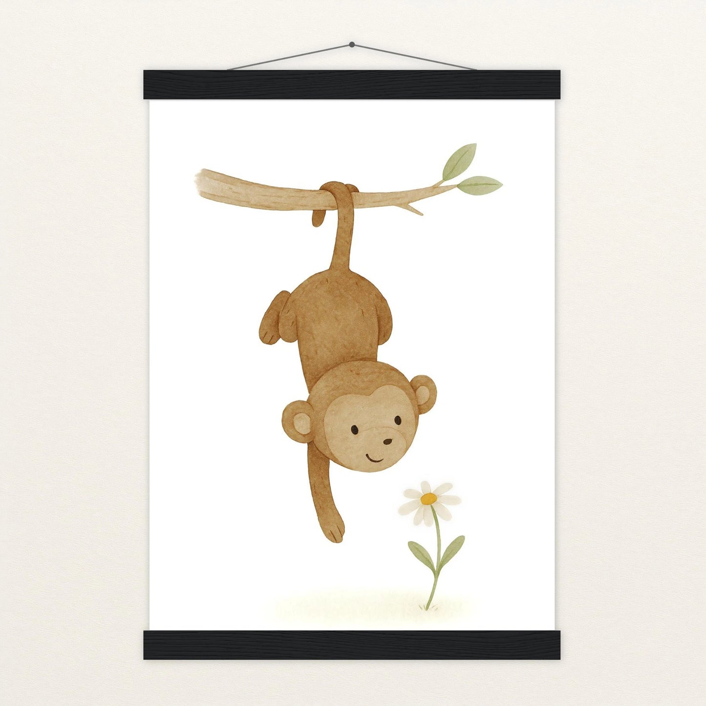 Aki der Affe - Motiv: "Gänseblümchen" Poster mit Leisten